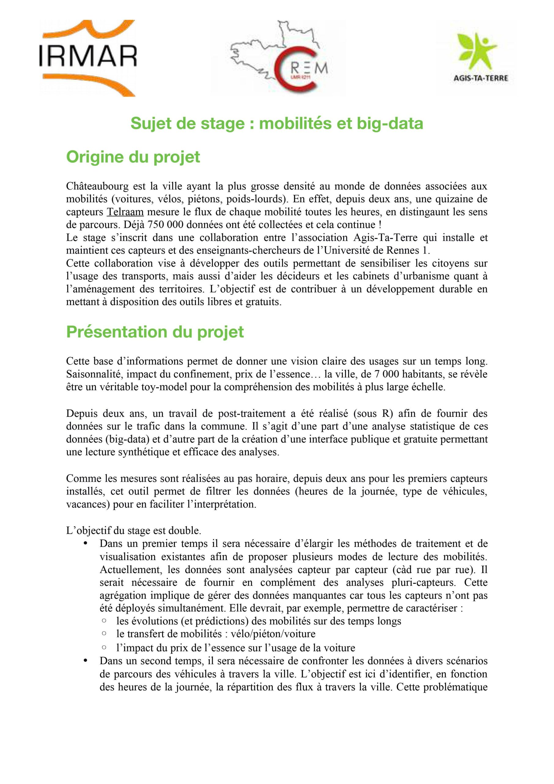 Le stage s’inscrit dans une collaboration entre notre association qui installe et maintient ces capteurs et des enseignants-chercheurs de l’Université de Rennes 1.